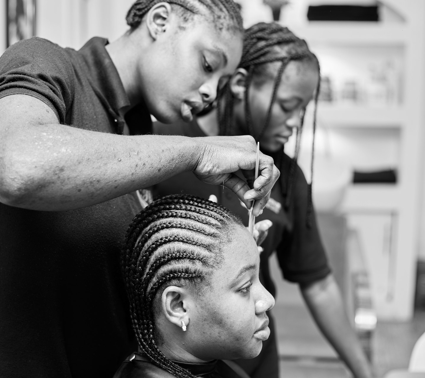 Creative makeup and hair styling for a high-fashion editorial shoot, emphasizing bold yet wearable looks.